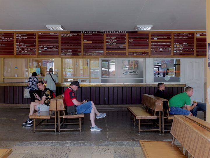 それでも旅の最後の日になって行かないと後悔するように感じて、朝一番の撮影の後、大急ぎで出かける用意をして長距離バスに飛び乗った。このバスに乗れたら、日があるうちにセメニシュケイまで着ける。あちらに泊まるつもりでバスの中でオンラインサイトから安宿を予約し、ビリニュスからバスを二度乗り継いで4時間ほどで隣町のビルジャイに到着した。