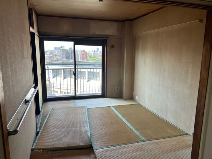 畳みも壁紙もボロボロの和室。