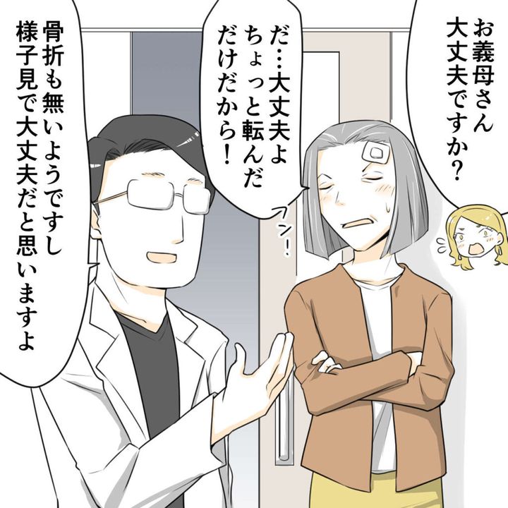 「お義母さん大丈夫ですか?」ケイコさんが心配そうに聞くと「だ・・・大丈夫よ。ちょっと転んだだけだから!フン!」と照れ隠しなのかぶっきらぼうに答えるお義母さん。医師も「骨折も無いようですし様子見で大丈夫だと思いますよ」と説明してくれました。