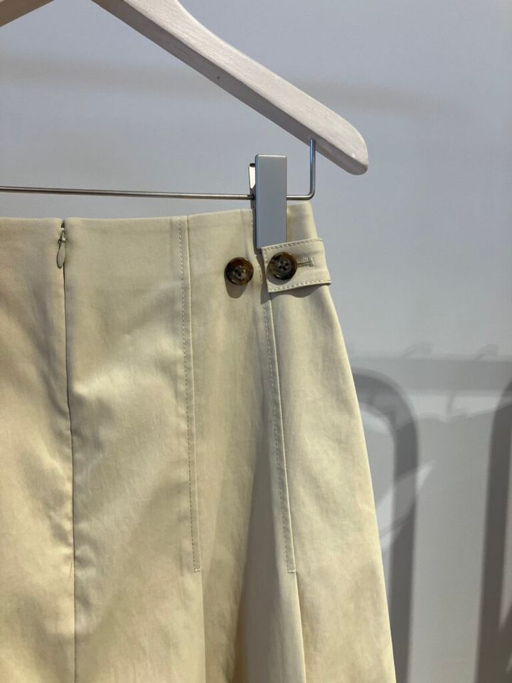 前出の「テックチノストレートパンツ」と同素材の高機能スカート。ウエストまわりにプリーツ風のタックを入れることで、腰まわりのボリュームをさりげなくカバー。裾に向かって絶妙に広がるフレアデザインが、装いに上品な華やぎをプラスします。 「着てみると分かるきれいなフレアに感動! 気になる体のラインは拾わずに、女性らしいシルエットを演出してくれます」(Otomatoさん)