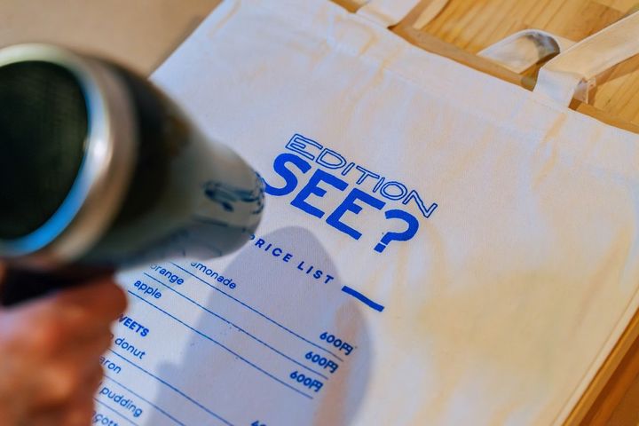 なお、体験料としては店頭にてボディを購入した場合は+1500円、ボディを持ち込む場合には2000円となります。今回はトートバッグを購入したので、トートバッグ2000円+プリント料金1500円で合計3500円でした。