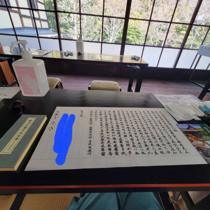 写経は集中力が切れると、文字が汚くなります。2時間かけて、やっと完成。