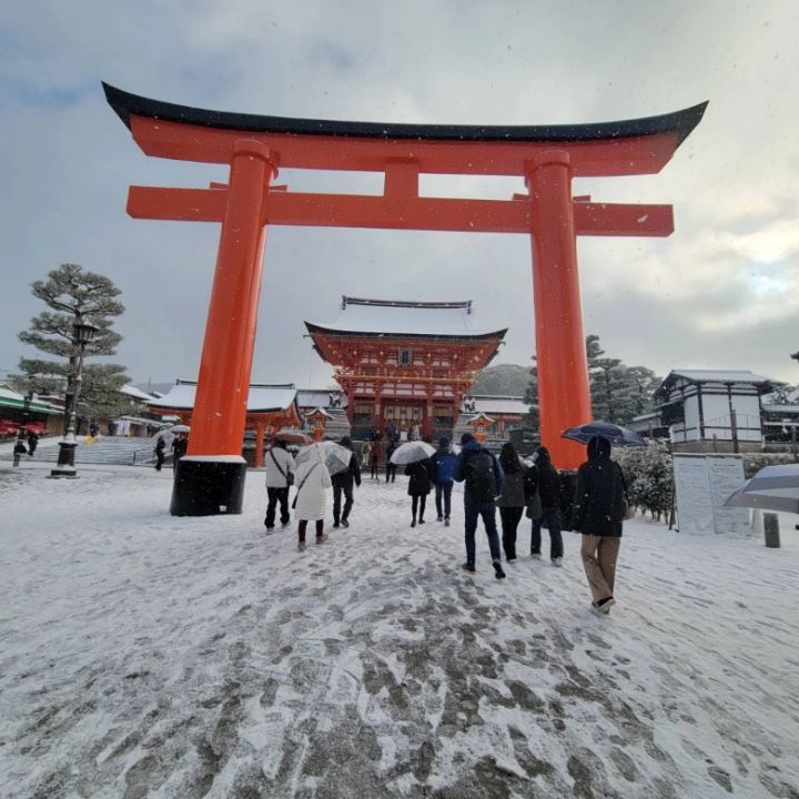二日目は雪が降っていたので、チャンスだと思い、朝から伏見稲荷神社に行きました。
