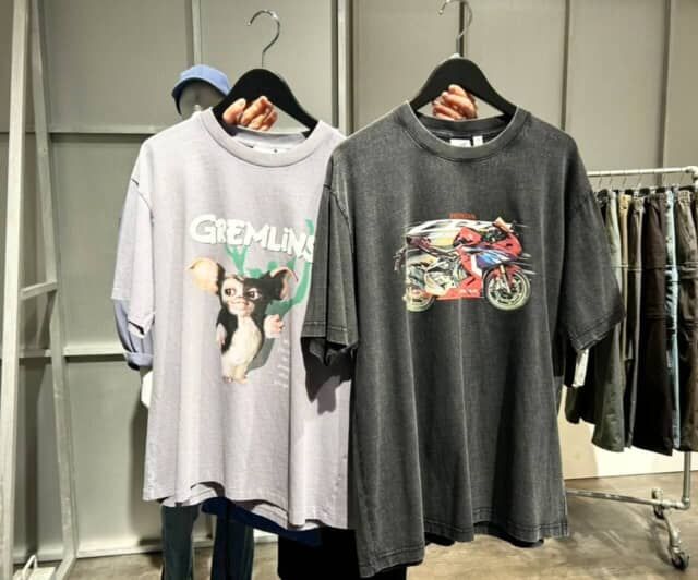 今季注目のアニメ・映画プリントTシャツは、あえてメンズサイズを選んでこなれ感を演出。ツイードジャケットやレザーアイテムと合わせることで、カジュアルながらも大人っぽい雰囲気に。