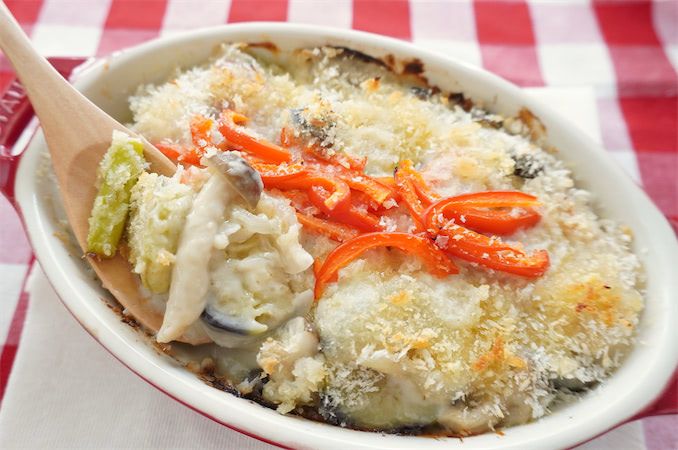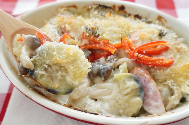 寒い日に食べたくなるグラタン。とろとろのホワイトソースがおいしいんですが、マカロニが余ることを考えると、やや作るハードルが高い…。そんなとき、長野県の農家に教わったグラタンがピタっときました!マカロニの代わりに揚げなすをたっぷり投入するんですって。また、しめじやアスパラなどの野菜もたっぷり。チーズを控えめにして、バターで風味を出していくのもポイントです♪