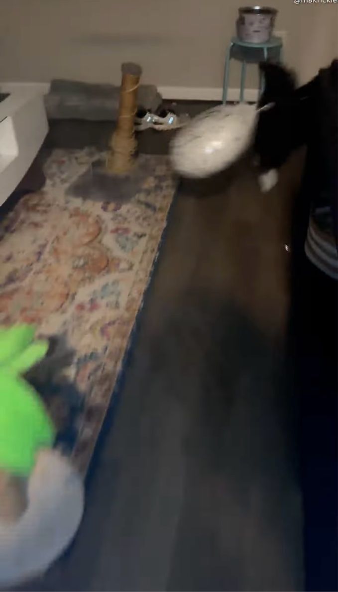 飼い主さんから風船を手渡されたネコ。 どうやら、ずっとこの風船がほしかったようで、嬉しそうにお家の中を駆けまわりはじめました!!