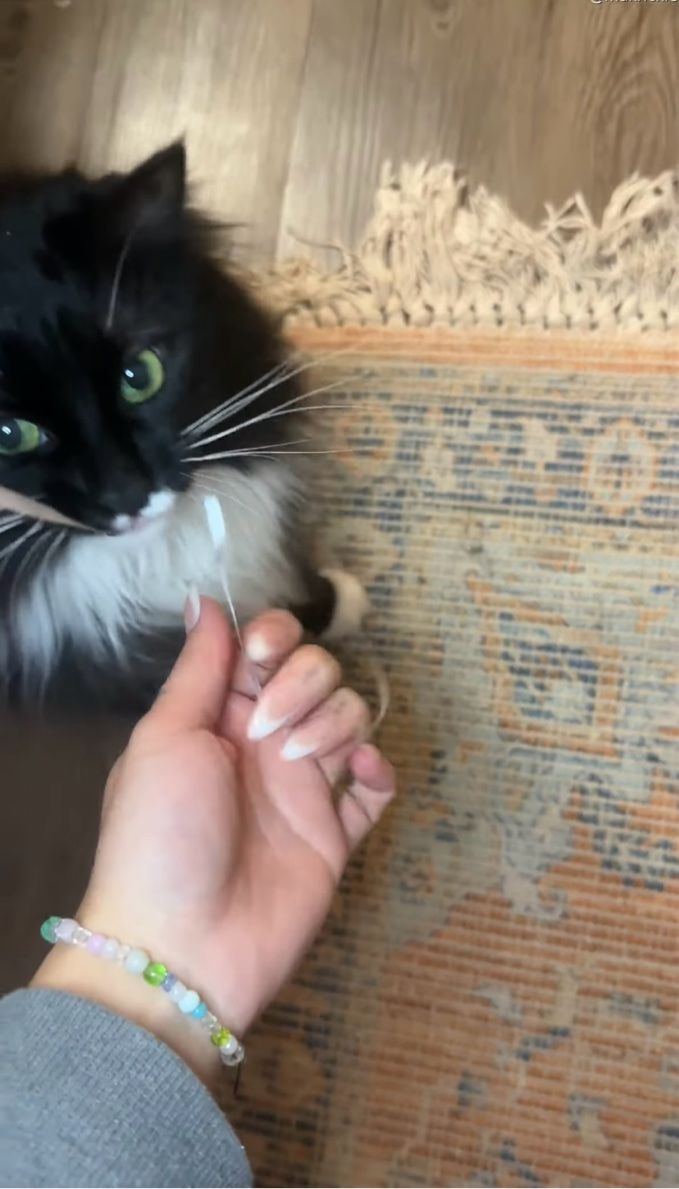 飼い主さんから、ネコの『ユミ』手渡された風船。 実はこの子、一日中この風船で遊びたがっていたそうです。
