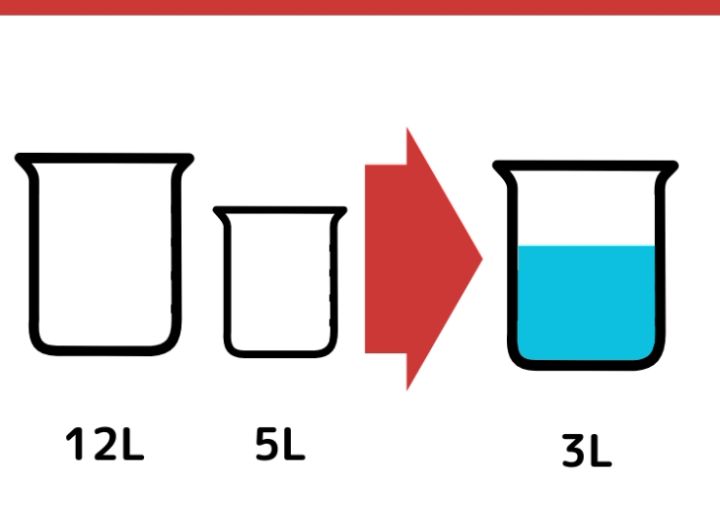 水がちょうど3L入る容器が手元にありません。12Lと5Lの容器を使って、ちょうど3Lの水を計る方法を考えてください。