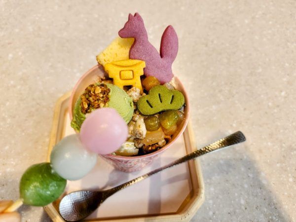 このクッキーがサクサクしていて、想像を超える美味しさ。パフェに入っていた可愛らしい3食団子もやわらかくていい感じ。