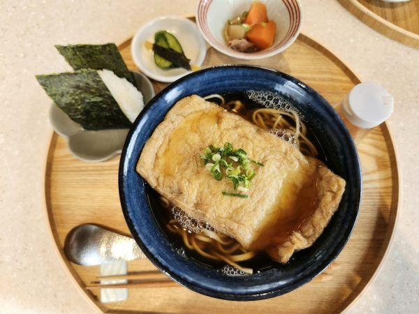 こちらは「竹駒きつね蕎麦 おむすび付き」1353円