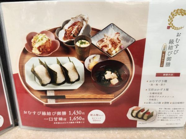「竹駒稲荷 お参り御膳」「おむすび縁結び御膳」「招福唐揚げ定食」など御利益を感じるメニューがラインナップ。魅力的ですね。