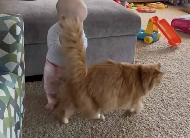 3. よちよち歩きの赤ちゃん。 目指す先にはモフモフ猫さん♡