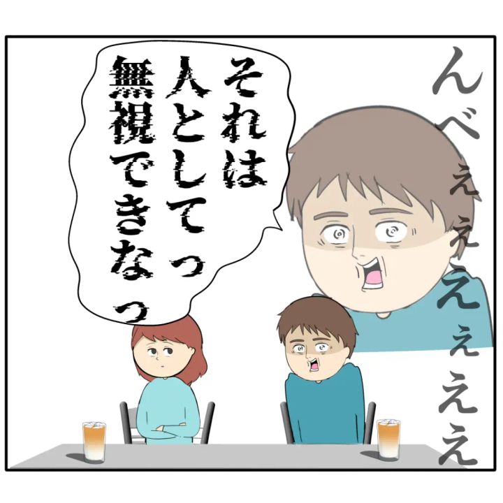 誕生日にジュリ実さんに会いに行こうとしていたことが妻のめいさんにバレてしまい激しく動揺するろみ緒さんは「それは人としてっ無視できなっ」と言い訳を始めます。