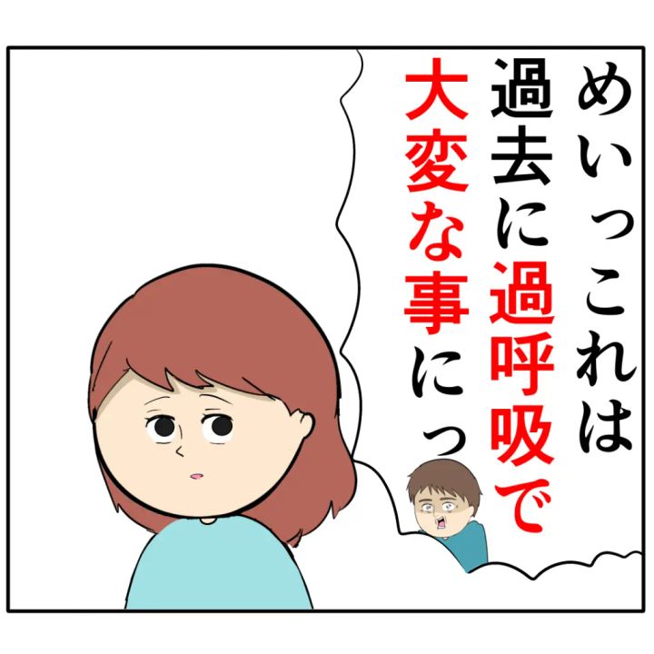 「めいっ!これは過去に過呼吸で大変な事にっ」と必死で言い訳するろみ緒さんをめいさんは冷めた目で見つめます。