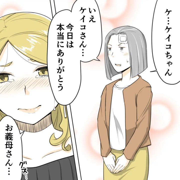「いいお嫁さんね」母がケイコさんを褒めても素直に認めなかったケイコさんの義母サワコさんですが、母の圧でようやく認めました。そして少し照れながらも、ケイコさんにきちんとお礼を言ったのです。「ケイコさん、今日は本当にありがとう。」その言葉が嬉しくて、ケイコさんの目は涙で溢れました。