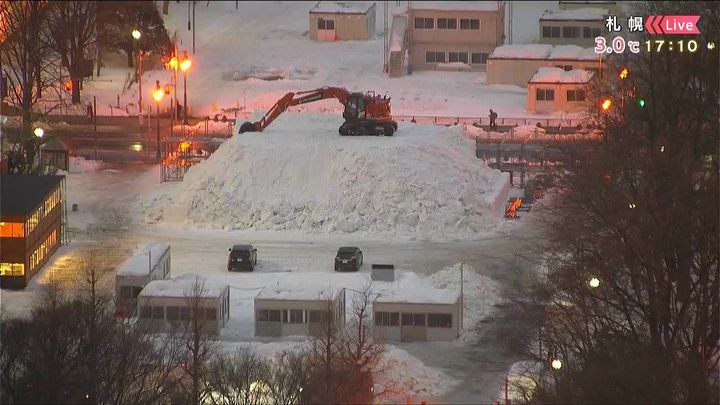 12日の札幌・大通公園では、雪まつりの大雪像が取り壊され、雪山となっています。