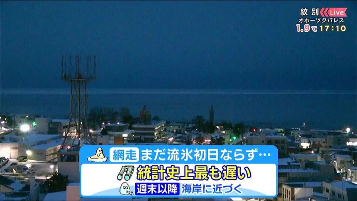 近づいていますが、網走ではまだ陸地から初めて流氷が見られる「流氷初日」を迎えていません。