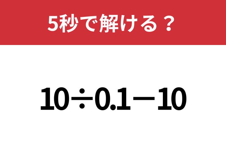 シンプルだけど、かなり難しいかも!?「10÷0.1−10」5秒で解ける?