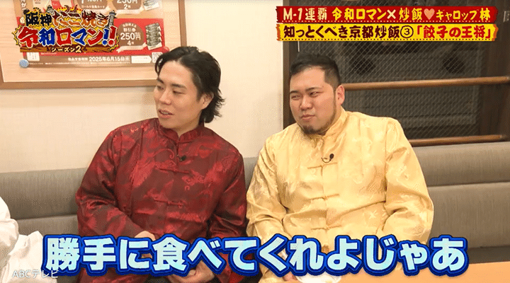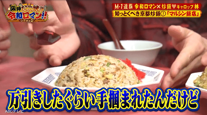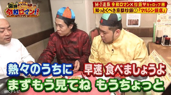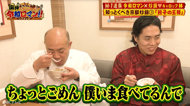 そんな林は、令和ロマンに祇園花月周辺の絶品チャーハンを教えようと、行列ができる名町中華・マルシン飯店へ。令和ロマンは、熱々のうちにチャーハンを味わおうとするが、「食べる前にチャーハンを凝視しろ!」「食べる前にチャーハンを嗅げ!」「食べる前に帽子を脱げ!」と、林の強すぎるこだわりがさく裂! 令和ロマンはすぐに試食できず、いざ食リポしても、「お医者さんに大きい声出すの止められている?」と、林からダメ出しされた。
