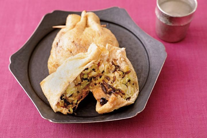 塩昆布キャベツの油揚げ詰め焼き