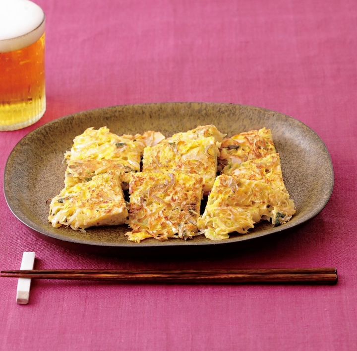 キャベツに溶き卵をまとわせて焼いた、チヂミ風のヘルシーつまみ。