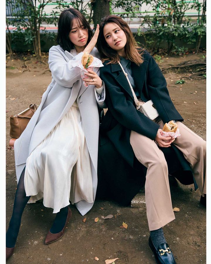 [ヒロナ]バッグ¥31,900(アタオ/スタジオアタオ)ローファー¥29,700(カミナンド/グラビテート)ソックス¥1,430(靴下屋/タビオ)[マイ]コート¥57,970スカート¥18,700(ともにSNIDEL/SNIDEL ルミネ新宿2店)ニット¥16,500(ジャスグリッティー/ジャスグリッティー プレスルーム)バッグ¥29,700(ロウェル シングス/アバハウスインターナショナル オンラインストア)パンプス¥17,050(ダイアナ/ダイアナ 銀座本店)