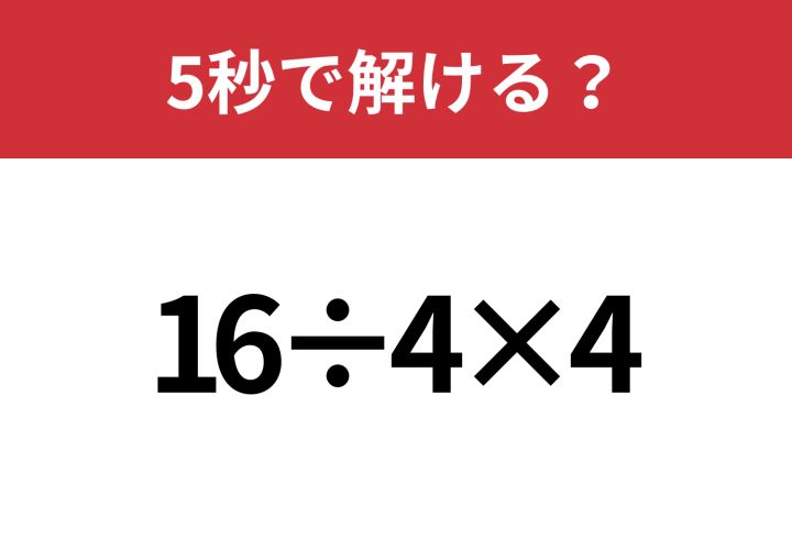 簡単そうに見えて、意外と難しい!?「16÷4×4」5秒で解ける?