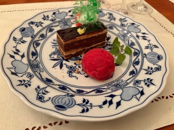 デザートは「ガトーオペラと木イチゴのソルベとともに」でした。木イチゴのソルベが、蕩ける中に食感の違う物が隠されていて、一口ごとに驚きが訪れ楽しかったです。