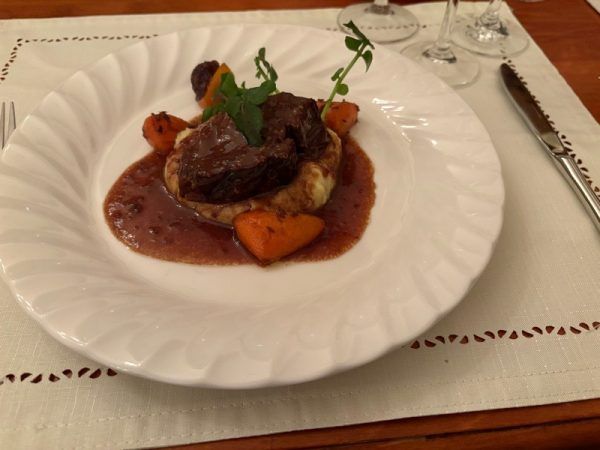 「鹿児島黒牛の赤ワイン煮 ジャガイモピューレ 人参のグラッセクミン風味」のお肉は日本一の肉の中山ということで、夢のようなおいしさでした。