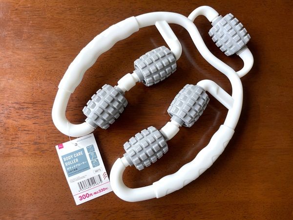 最後は「ボディローラー」(550円)。ふくらはぎや太ももに挟んで転がすボディケアグッズふくらはぎや太ももに挟んで転がすボディケアグッズです。