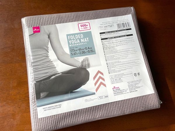 「折畳みヨガマット」(550円)は、折り畳んで収納や持ち運びができるヨガマット。通常のヨガマットはクルクルと巻くタイプが多いのですが、こちらは折り畳むことができるのでバッグにも入れやすいのが嬉しいポイント。