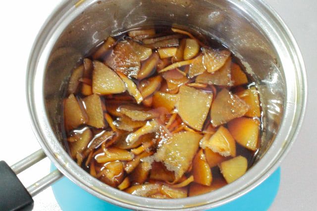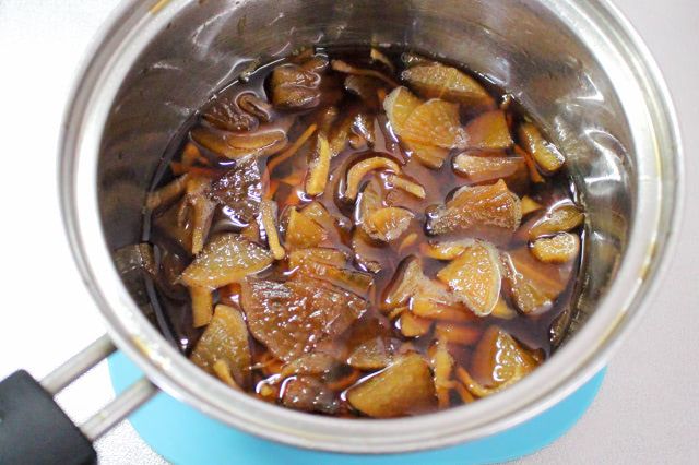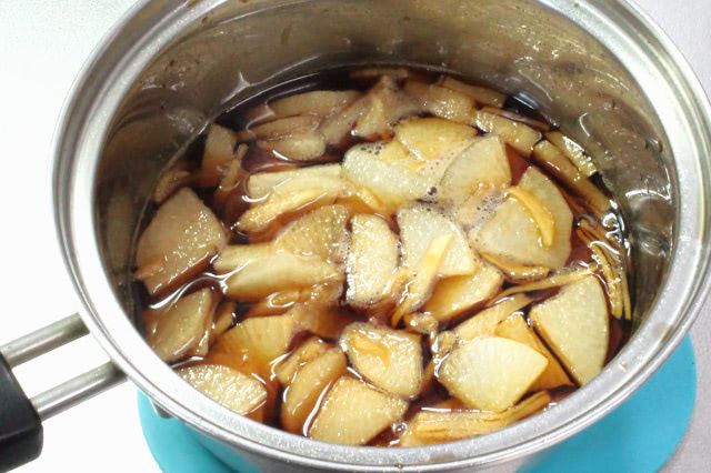 この時点で大根を味見してみると、薄切りにしたので見た目の色よりもしょうゆ味が染み込んでいる印象。