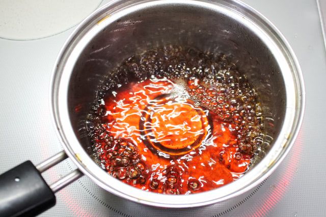 3の工程をもう一度繰り返します。具を取り除いた煮汁を強めの中火で1分ほど加熱しました。