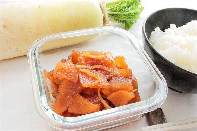 煮て冷ますという工程を3回繰り返すことで、大根がクセになるパリパリ食感になり、煮汁も煮詰まって保存性が高まるそうですよ。