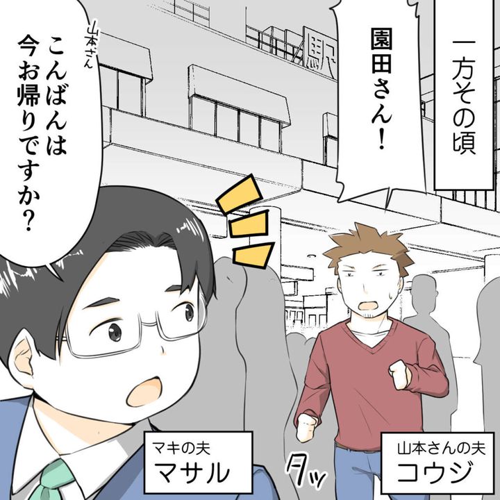 一方その頃、最寄り駅でケイコさんの夫コウジさんに声をかけられた夫。