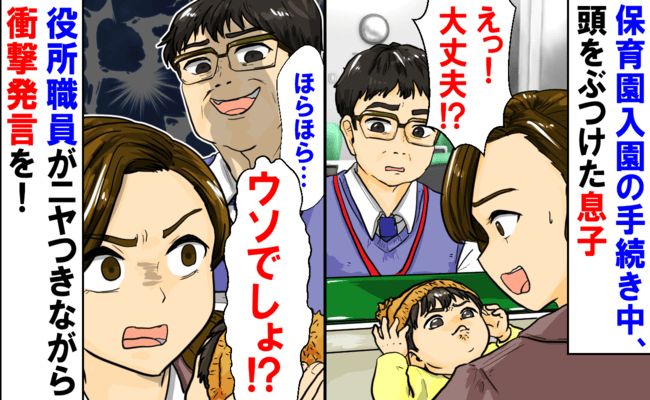 「ウソ…」保育園入園の手続き中、頭をぶつけた息子。役所職員がニヤつきながらゾッとする発言!私は!?