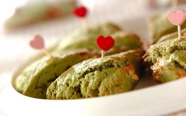 濃い緑色がきれいなスコーンやメロンパンといった、バレンタインのギフトにぴったりなレシピも登場します。