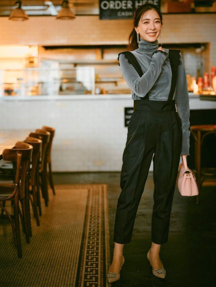 3. 手持ちのトップスに合わせるだけでOKな「フリルサロペット」で簡単にオシャレ見え!