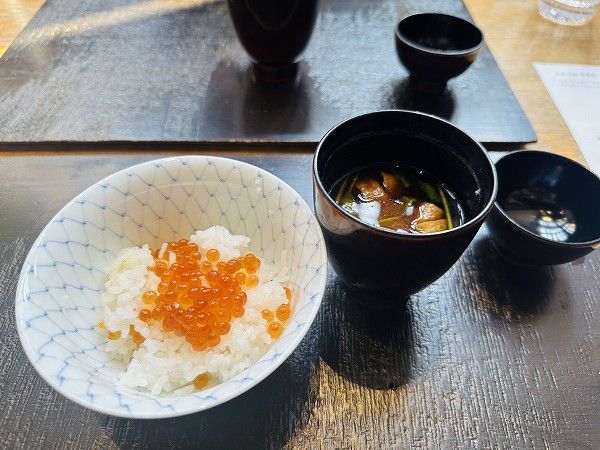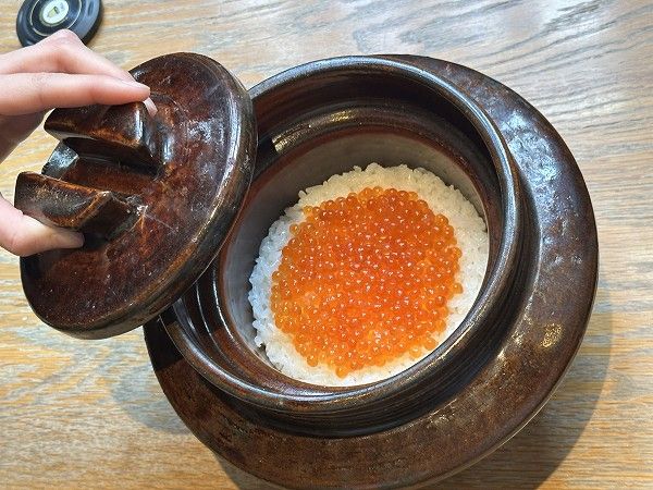 ぷちぷちのいくらがたっぷりの土鍋ご飯。お焦げも楽しめて、最後まで満足感たっぷりです。
