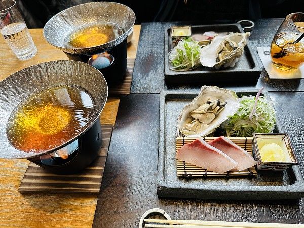 お刺身でも食べられる新鮮な寒ブリと牡蠣を贅沢に使用した小鍋。柚子の香りが食欲をそそり、体の中から温まる一品。