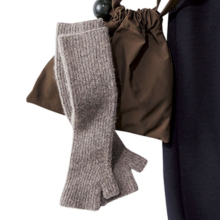 冬は被り物、巻き物が必須な寒がり・はま子さんが今年目をつけたのが、2つが一体化したバラクラバマフラー。自転車や逆風でも飛ばされずに隙間を埋めて、ひとつで完全防寒に成功。手持ちアウターが今年っぽくなるブラウンがおすすめ。