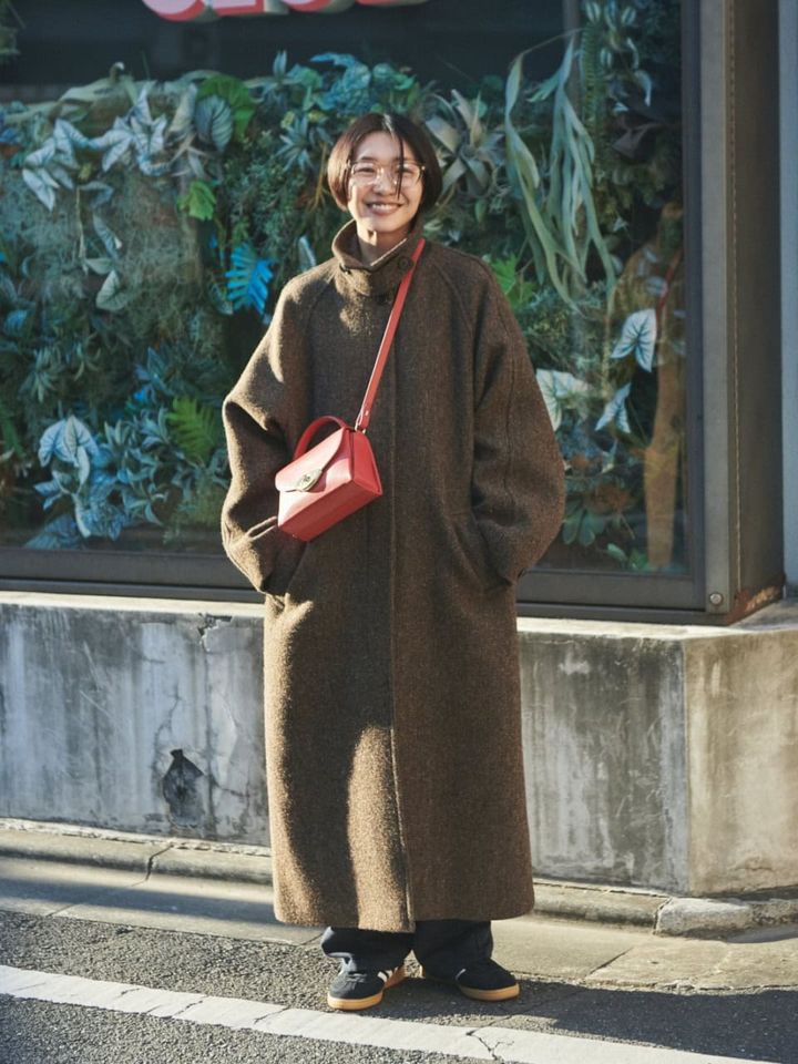 あえてボリュームのあるスニーカーを合わせる野暮ったさスレスレのバランスで、キレイめコートスタイルをレトロな雰囲気に落とし込む高等テクニック。さり気ない差し色にもなり、コーデのアクセントとしてもスニーカーは大活躍。