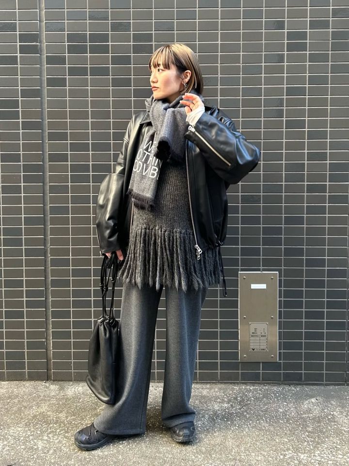 ゆったりしたサイズ感のコートと好バランスな、テック系スニーカーの存在感。ボトムとカラーを統一すれば、カジュアルながらスタイリッシュさもキープできて◎。