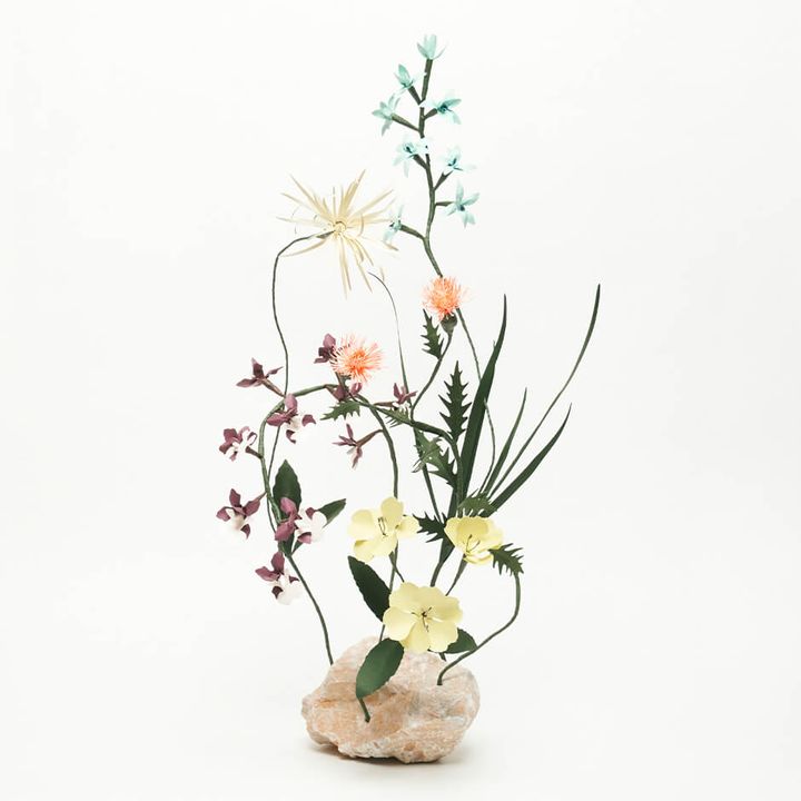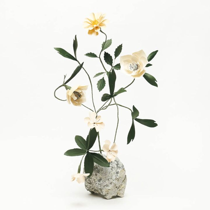 「IKEBANA」 2025年 紙、ワイヤー、石
