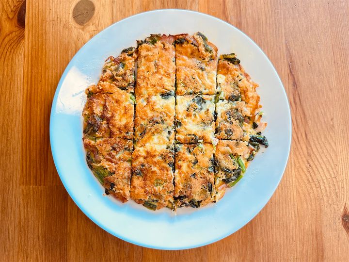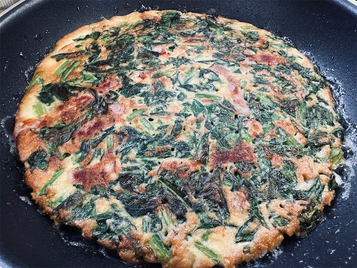 チヂミって、ニラを入れるのが定番ですが、今回埼玉県の農家に教わったレシピは、「ほうれん草」が主役!しかも、生地に卵とベーコンを入れて、さらにチーズをのせてカリッカリに焼くんです。これはチヂミというより、韓国風スパニッシュオムレツと言ってもいいのでは⁉いつものチヂミに飽きちゃた人や、チーズが大好きな人は、必見のレシピですよ~♪
