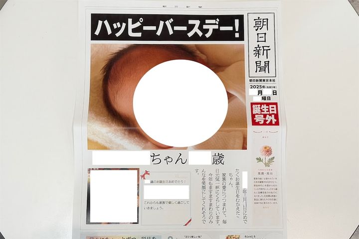 朝日新聞が提供している「世界にひとつの誕生日新聞」は、子どもの誕生日をお祝いできる「号外」をオリジナル写真で作れるサービスです。写真やメッセージをスマホから送信すると、セブン-イレブンでプリントアウトできます。