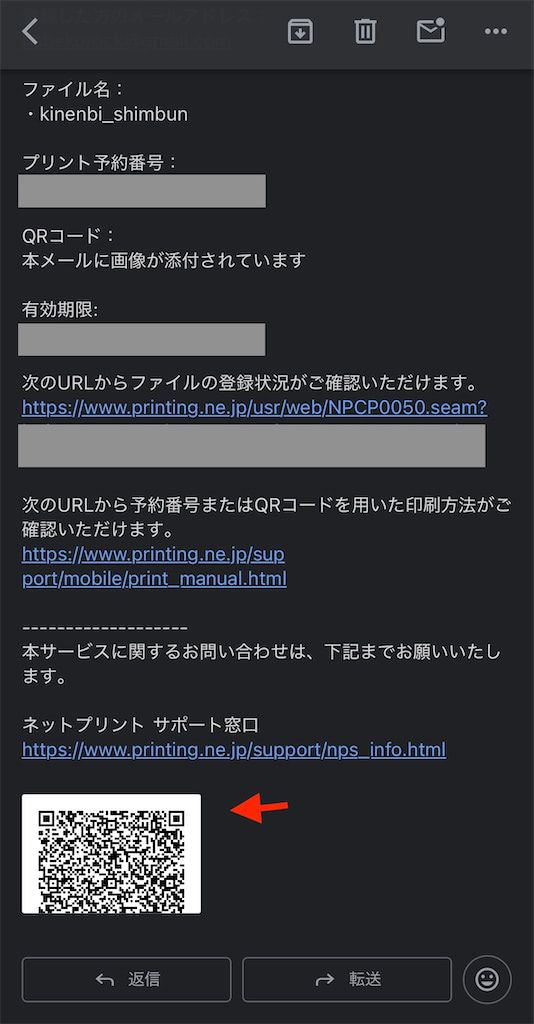 9.準備が整い、プリントができるようになると、登録したメールアドレス宛にQRコード付きのお知らせメールが届きます