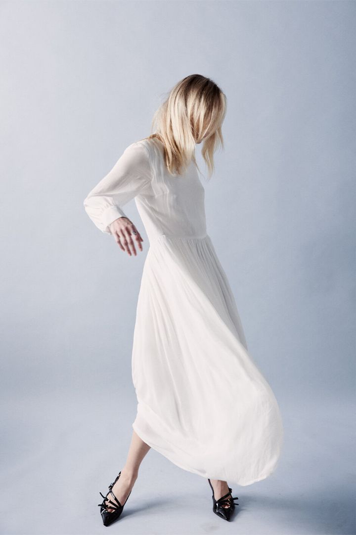 dress by AMERICAN VINTAGE, blouse by YOLANCRIS, sandals by CLOSED, collar by SARA DIVITA