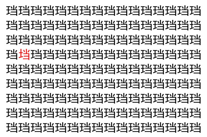 画像の中には、「珰」という漢字が縦に9行、横に16個並んでいます。 全部で144個となりますが・・・、そのうち1つは「異なる漢字」となってますよ!!