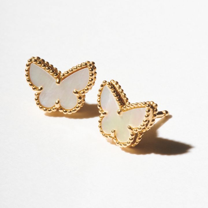 優雅に羽ばたく蝶が幸運を連れてくる。ピアス「スウィート パピヨン ピアス」〈YG×マザーオブパール〉¥385,000(ヴァン クリーフ&アーペル/ヴァン クリーフ&アーペル ル デスク)